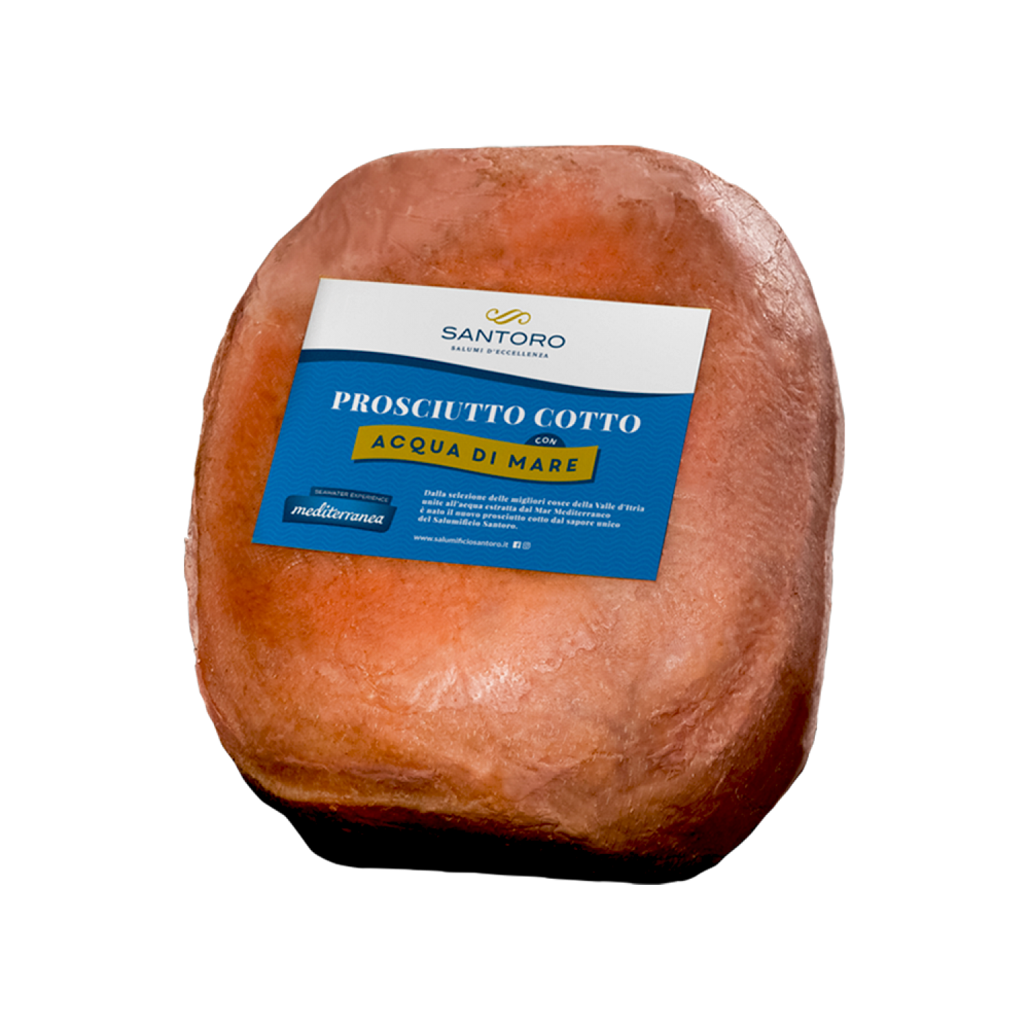 Lontani dal mare non si può stare, lo sappiamo bene. Da questa voglia di onde, dalle migliori cosce della Valle d’Itria e dall’acqua estratta direttamente dal Mar Mediterraneo nasce il nostro Prosciutto Cotto Artigianale all’Acqua di Mare. Salumificio Santoro incontra Mediterranea e la sua acqua con ben 78 minerali differenti per dare vita a un prosciutto cotto dal sapore unico e dal gusto equilibrato e intenso.